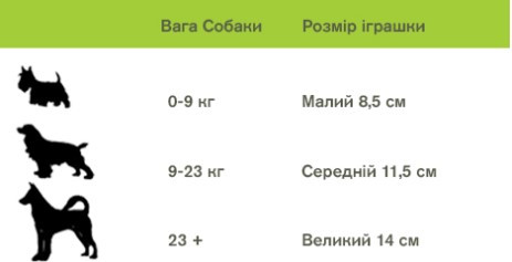 • Різні варіанти розмірів для гри різних собак – мала 8,5 см, середня 11,5 см, велика 14 см