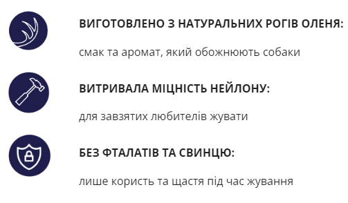 БІЛЬШЕ РОЗМІРІВ – БІЛЬШЕ ЩАСЛИВИХ СОБАК: ми розуміємо, що кожен собака унікальний, єдиний розмір іграшки не підійде кожній собаці. Саме тому оленячі роги створені у чотирьох варіантах розмірів, від мініатюрної до великої, щоб ви змогли обрати ідеальний ріг, що пасуватиме саме вашому собаці.