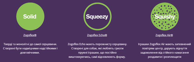 Будь ласка, майте на увазі, що безпека Вашого вихованця – це ваша відповідальність. При виборі іграшок важливо, щоб вони підходили за формою і розміром для Вашої собаки. Наглядайте за собакою під час використання іграшки. Не існує іграшок, які зовсім неможливо погризти. Якщо ваш вихованець один з небагатьох, хто здатний дійсно суттєво погризти і пошкодити навіть таку надміцну іграшку як Zogoflex, в такому випадку використання іграшки краще припинити*
