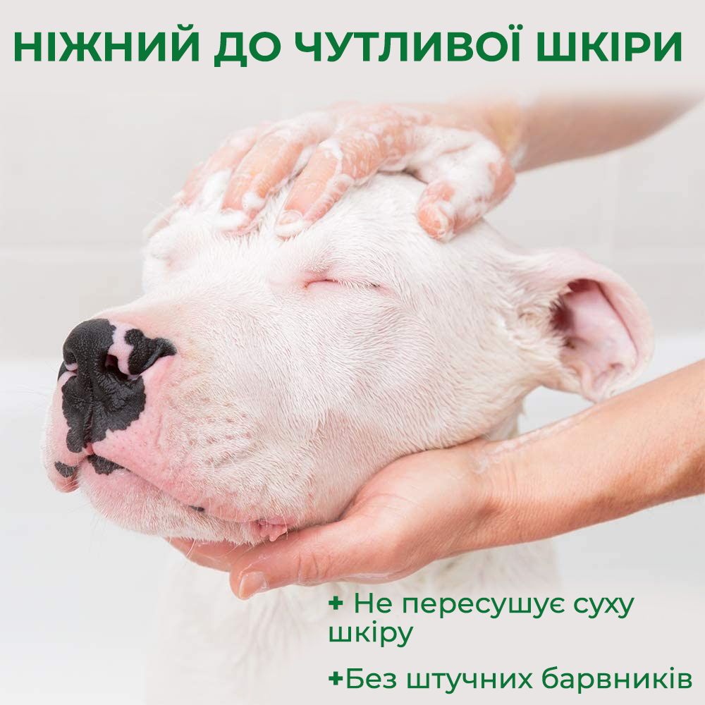 Шампунь, що заспокоює та зволожує шкіру вихованця, залишаючи приємний аромат, як після спа процедури