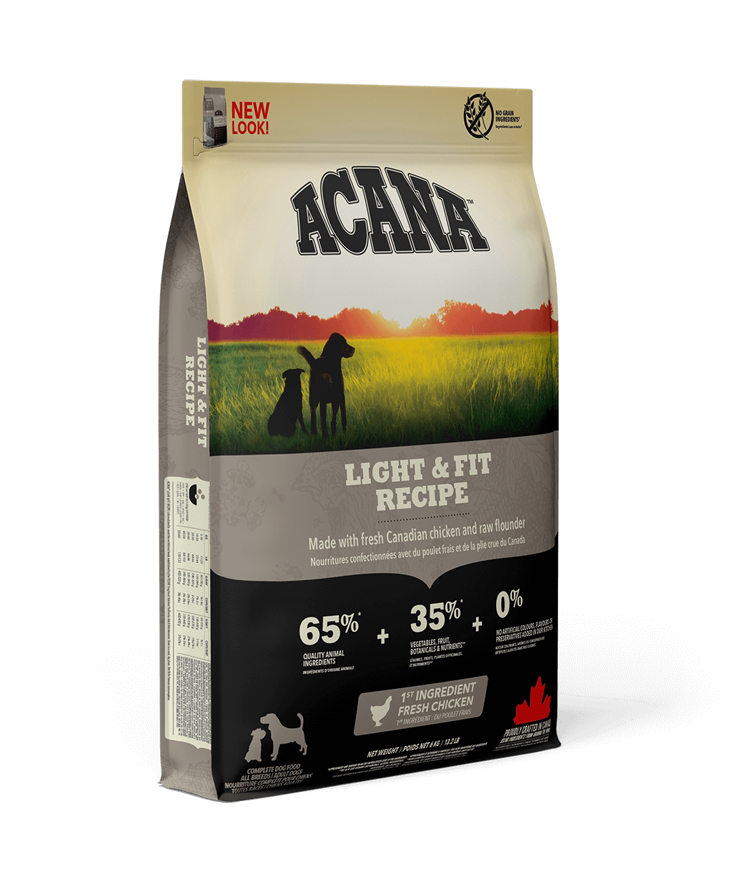 Коли це стосується корму ACANA, кожен інгредієнт має значення. Саме тому, рецептура Light & Fit Recipe створюється з турботою щоб забезпечувати здорову вагу тіла собак. Рецептура АКАНА Лайт енд Фіт Ресіпе на 65% переповнена якісними м’ясними інгредієнтами, такими як м’ясо канадських курчат та сирої камбали та на 35% збалансована фруктами, овочами та травами.