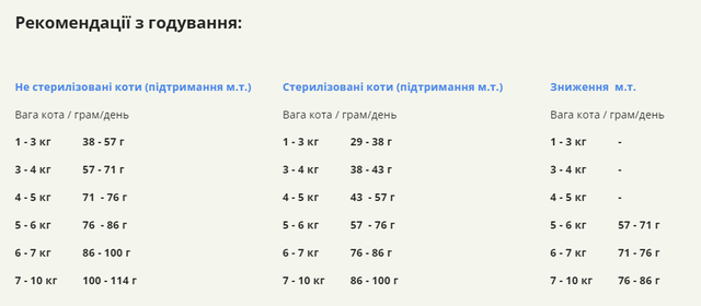 Кожна кішка це яскрава індивідуальність і тому норми вигодовування в кожному окремому випадку будуть відрізнятися, в залежності від породи, активності, віку і навколишнього середовища.