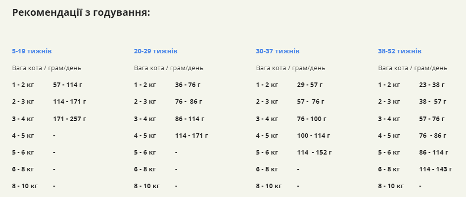 Кожна кішка це яскрава індивідуальність і тому норми вигодовування в кожному окремому випадку будуть відрізнятися, в залежності від породи, активності, віку і навколишнього середовища.