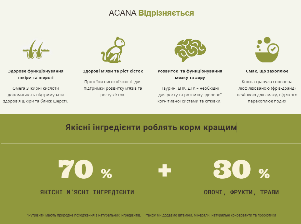 Нехай життя вашого кошеняти розпочнеться смачним бенкетом з кормом ACANA First Feast. Раціон сповнений цільними м’ясними інгредієнтами, створений спеціально, щоб забезпечувати всі необхідні потреби вашого кошеняти в період зростання та розвитку.
