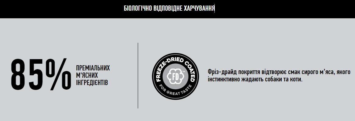 • 2/3 кожної упаковки цього корму складається зі свіжих або сирих інгредієнтів
