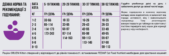 Ось чому ми рекомендуємо використовувати цю таблицю як орієнтовану і постійно перевіряти вагу кішки для корекції раціону за потребою. Годуйте кішку 2 рази на добу і забезпечте їй постійний доступ до свіжої питної води.