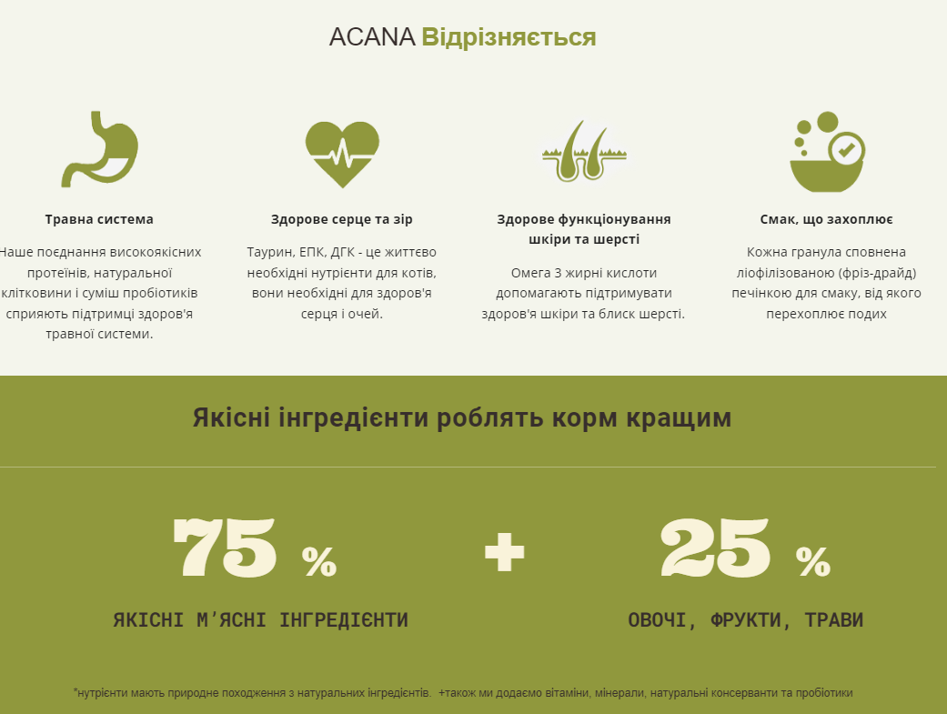 АКАНА Гресслендс Кет. Корм для котів всіх порід та всіх стадій життя.