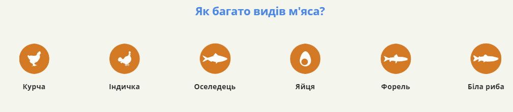 Свіже м’ясо курки (9%), Свіже м’ясо індички (9%), свіжа печінка курки (9%), дегідратоване м’ясо курки (8.5%), дегідратоване м’ясо індички (8%), дегідратований оселедець (8%), квасоля строката, цільний горох, курячий жир (6%), цільна червона сочевиця, нут, зелена сочевиця, цільні гніздові яйця (4%), сира біла риба, виловлена в дикій природі (4%), сира форель, виловлена в дикій природі (4%), сирий лівер індички (печінка, серце) (2%), клітковина сочевиці, жир минтая (1%), свіже куряче серце (1%), курячі хрящі (1%), ліофілізована печінка курки та індички (0.5%), висушена ламінарія, свіжий гарбуз, свіжий мускатний гарбуз, капуста кале, свіжий шпинат, свіжа зелень ріпи, свіжа морква, свіжі яблука, свіжі груші, свіжа журавлина, свіжа чорниця, корінь цикорію, корінь куркуми, розторопша, корінь лопуха, лаванда, корінь алтеї, шипшина
