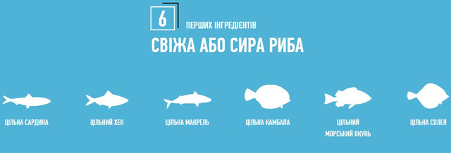 – 2/3 риби у складі корму ORIJEN являється СВІЖОЮ (охолодженою, без додавання консервантів), або СИРОЮ (миттєво замороженою, без додавання консервантів), включаючи топ 6 інгредієнтів у складі.