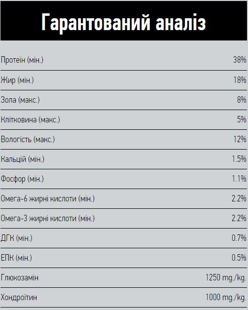 – 1/3 інгредієнтів – це цільна риба, висушена при температурі 90°C. Відмінне концентроване джерело високопоживних протеїнів, надходження яких неможливо забезпечити додаючи лише свіжу рибу.