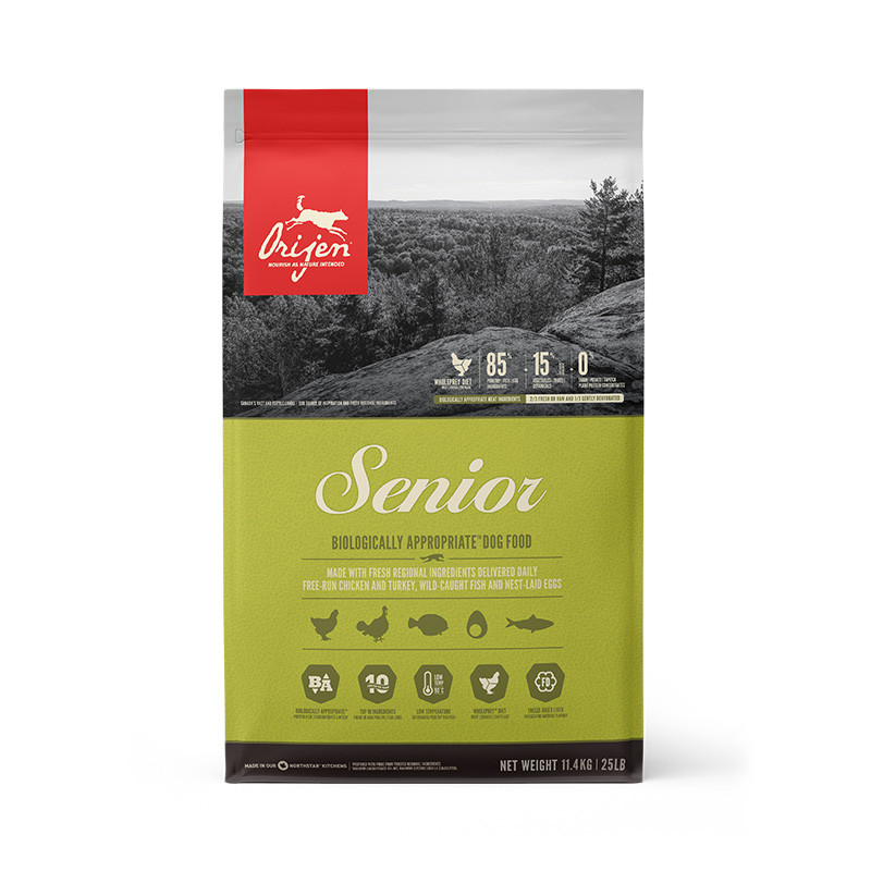 Допоможіть вашому собаці процвітати та бути щасливим, за допомогою сили високопротеїнової рецептури ORIJEN Senior, що забезпечує йому відмінне харчування.