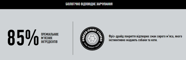 • 85% складу – це якісні інгредієнти з птиці та риби, що забезпечують потужне джерело есенціальних протеїнів, вітамінів та мінералів.
